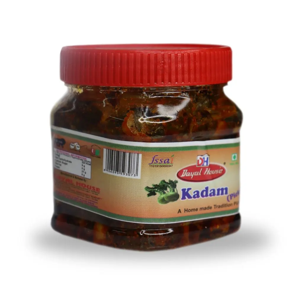 Dayal House Spl Kashmiri Kadam Pickle is a traditional Indian pickle made from Kashmiri kadam, blended with aromatic spices to deliver an authentic and tangy flavor.Â